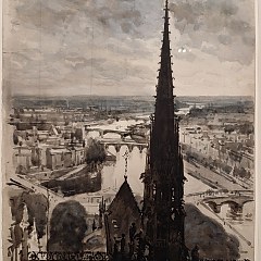 《巴黎圣母院:从塔楼俯视尖顶》(Notre-Dame de Paris : la flèche vue des tours),Joseph Pennell,1893年
