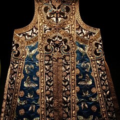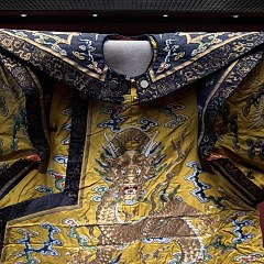 故宫博物院拥有世界上体系最完整的清代宫廷服饰收藏。本次展览遴选40件故宫博物院藏织绣品,涵盖成衣、戏衣、匹料、挂屏、配饰等多个门类,缂、绣、锦、缎等各色工艺,亮点包括康乾雍三代龙袍、昆曲《牡丹亭》戏服、缂丝宋徽宗花鸟图、光绪皇帝大婚御用服装配饰等。