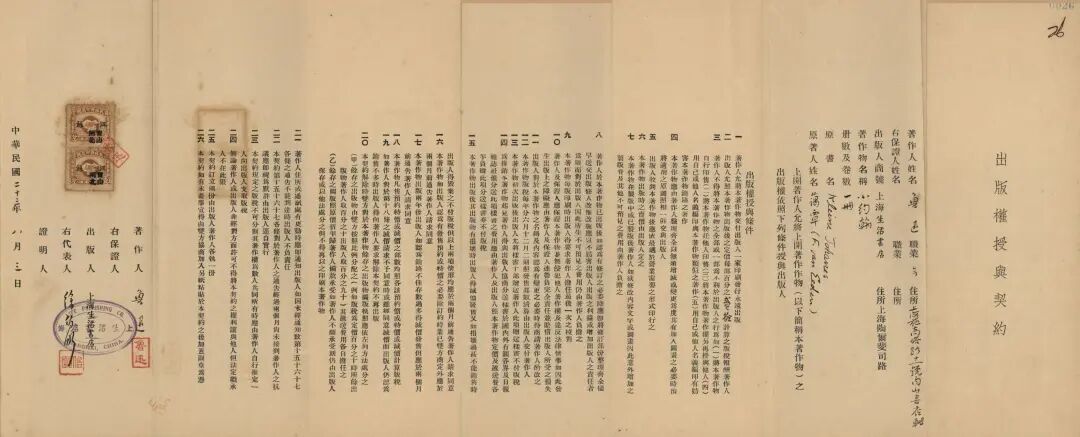 上海生活书店与鲁迅签订《小约翰》出版权授与契约,1934年