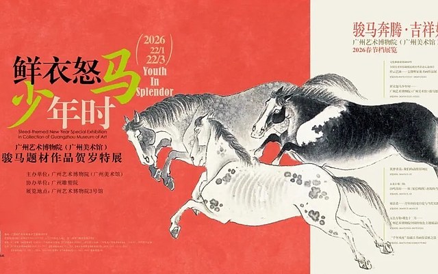 为庆祝2026中国农历丙午马年,本次展览以「鲜衣怒马少年时」为题,荟萃古今骏马题材作品52件(套),呈现「马」在中国传统文化中的象征意义和精神内涵。最重要的一件展品为国家一级文物、广东籍画家张穆代表作《七十龙媒图》。
