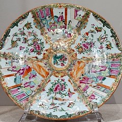 广彩瓷是本次展览的核心展品。1757年至1841年,清政府实行「一口通商」政策,广州成为当时中国唯一的对外贸易港口,专为外销市场创新烧制的广州织锦彩瓷(即「广彩瓷」)应运而生。广彩瓷器型多样、风格奢华,大量借鉴西方绘画技巧与装饰风格,甚至推出了来样定制的「纹章瓷」品类,受到欧洲客户的广泛喜爱。