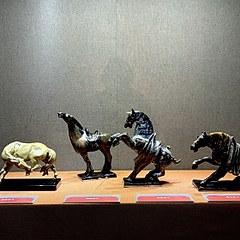 第二单元「金戈铁马:马与古代军政」聚焦马的战略价值,通过相关遗存、历代马政制度文物等,呈现马在战争中的关键作用、与帝王威仪的深度绑定及系统化的马政管理体系。
