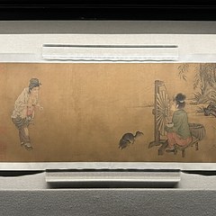 本次展览汇集故宫博物院藏101件(套)古书画现代摹本,内容涵盖自汉至清代的故宫藏古代书画,包括西汉《马王堆汉墓出土导引图》、唐代张萱《虢国夫人游春图》、五代周文矩《重屏会棋图》、宋代李嵩《货郎图》等诸多名迹。