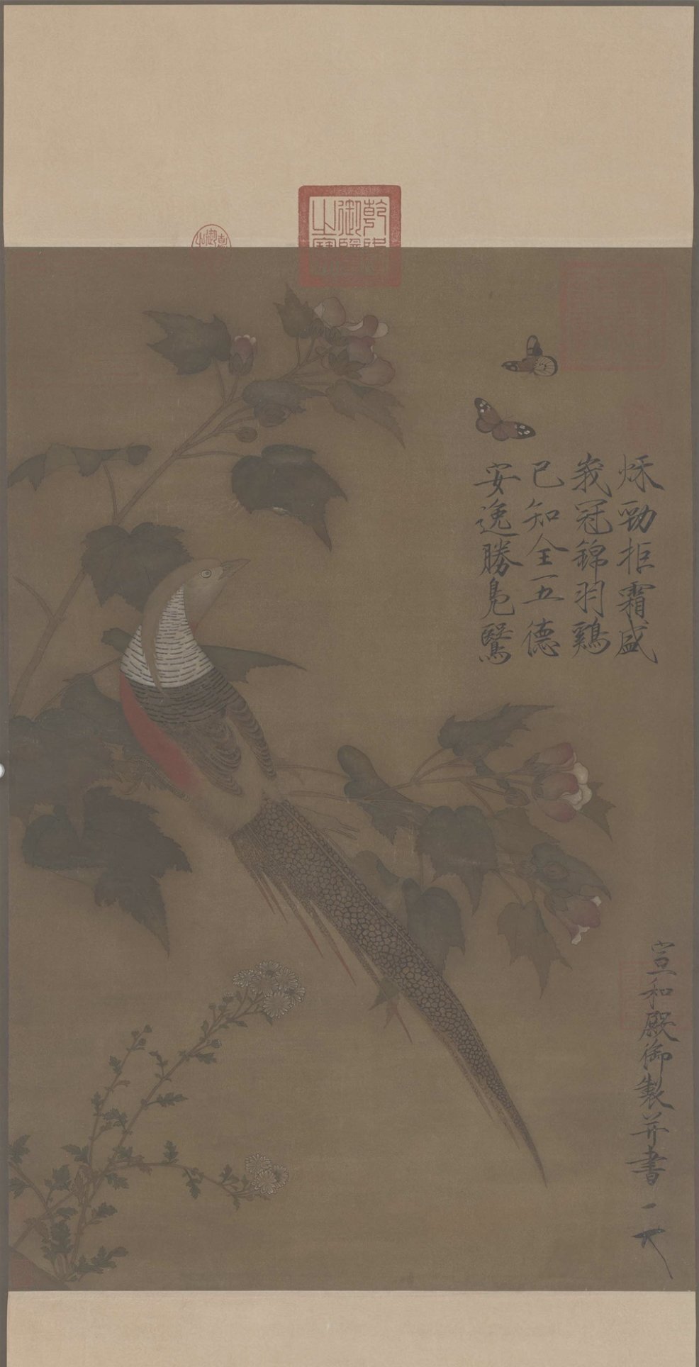 宋赵佶《芙蓉锦鸡图》摹本,金小燕临摹