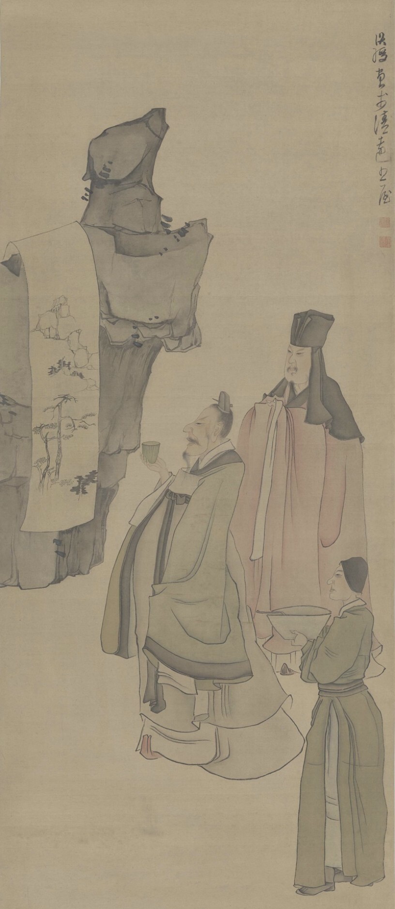 明陈洪绶《观画图》摹本,余昭华临摹