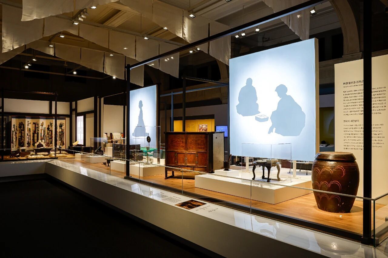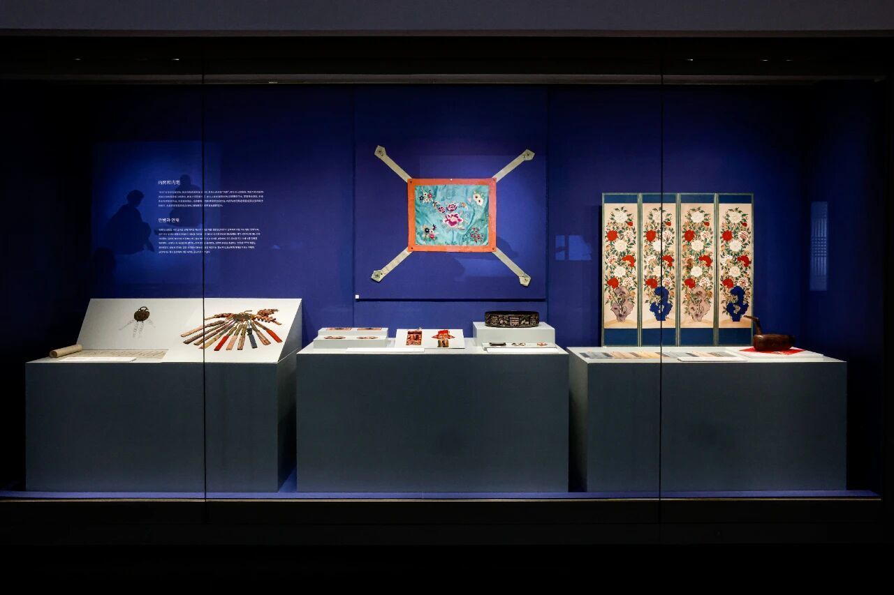 第二单元「传统居住文化:韩屋」聚焦韩国传统居住文化与空间布局,通过模型与图示,解析韩屋依托「温突」(地暖)与木地板走廊适配四季气候的营造理念;借由「舍廊房」内象征士人修养的文房四宝、雅致扇画,与「内房」中展现女性日常的「闺中七友」等物件,揭示传统住宅中严谨的社会结构与空间礼制。