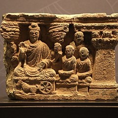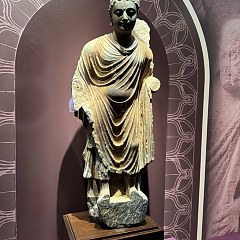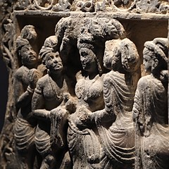 犍陀罗古国位于现在的巴基斯坦西北部、阿富汗中部,曾是古印度列国时代的「十六大国」之一。这一地区曾经先后由希腊人、塞种人、贵霜人、波斯人统治,希腊与罗马、波斯、印度等多元文明在此碰撞交流,与当地佛教文化相融合,形成了盛极一时的犍陀罗艺术。