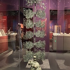 展览汇集了多个财神形象,既有赵公明、关公、比干、范蠡、李诡祖等「官方」正财神,也有招财童子、利市仙官、刘海蟾、土地公、和合二仙等偏财神。一并展出的还包括摇钱树、聚宝盆、玉如意等具有招财进宝寓意的器物。