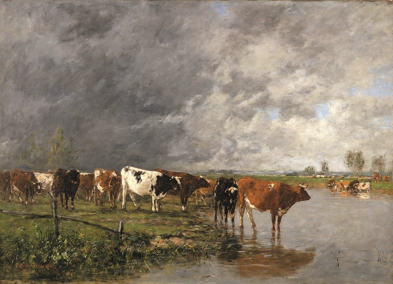 《饮水的牛群》,Eugène Boudin,1880年,法国兰斯美术馆藏