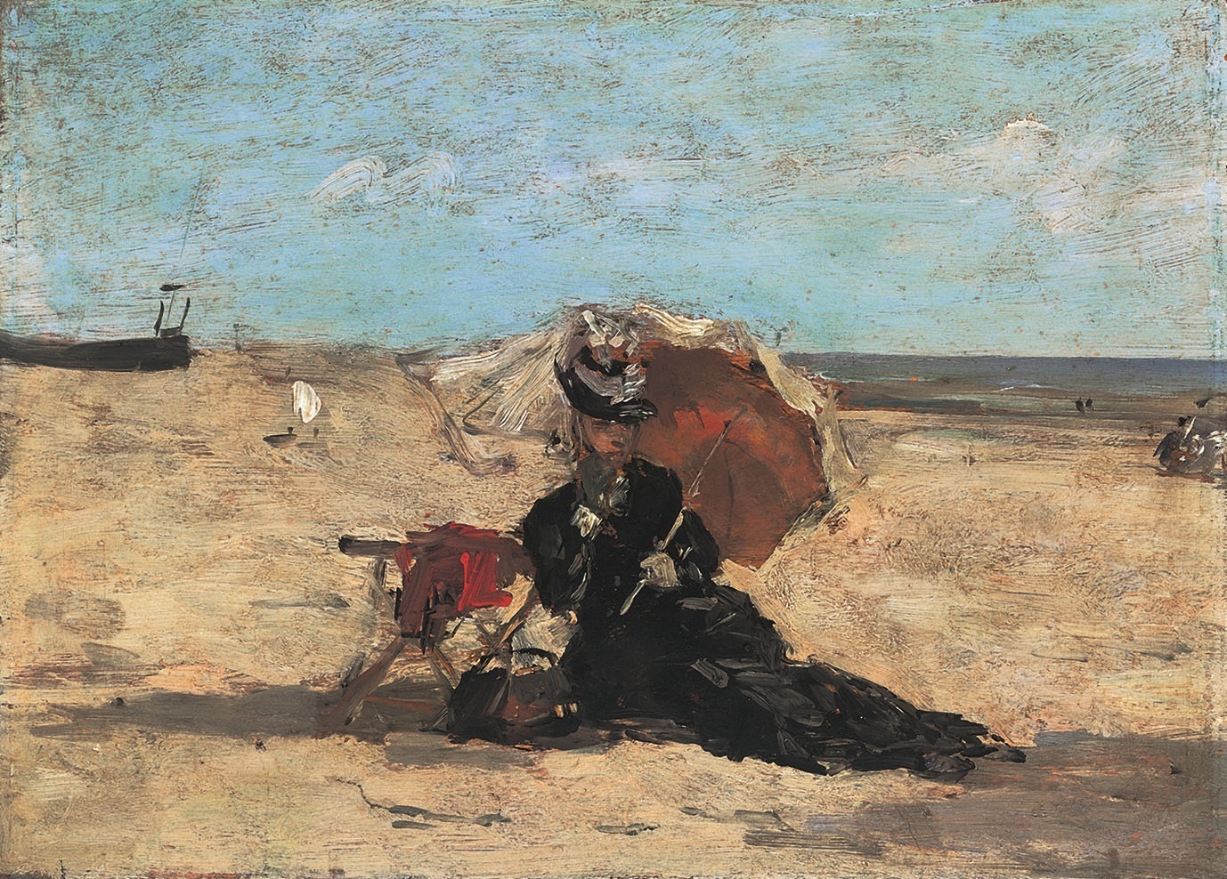 《贝尔克海滩上的撑伞女子》,Eugène Boudin,约1873年,法国欧仁·布丹博物馆藏