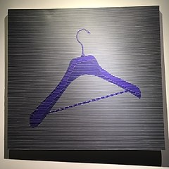 他的视觉表达始终表现出一种荒诞感与疏离感,关注自我生存体验与生活经验。在画作《衣架》中,他将极为平常的日常物品作为商业文化的表征与符号,反映信息泛滥与碎片化时代的生存体验。