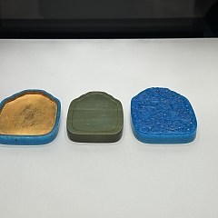 蓝色玻璃刻螭龙纹嵌宝石砚盒及松花砚