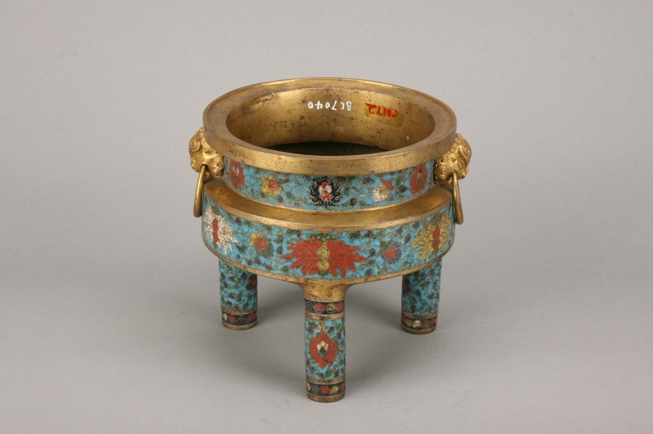 铜胎掐丝珐琅缠枝莲纹三足炉,清代,承德避暑山庄博物院藏