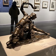 最重磅的展品为芝加哥艺术博物收藏的两件莫奈真迹《睡莲池》与《睡莲》。前者完成于1900年,画面中紫藤轻垂于桥栏之上,池中睡莲绽放,四周环绕着垂柳与鸢尾;后者创作于1906年,主画面近乎填满水面,倒映着天空与树影,蓝紫色调营造出一种迷离梦幻的氛围。