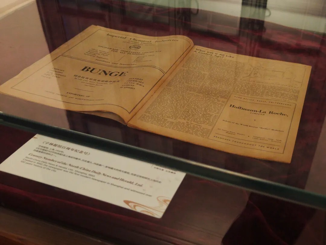 第三板块为报刊展区,汇集上海最早的英文周报《北华捷报》创刊头版、作为其后续的《字林西报》创刊头版、以客观评论著称的《密勒氏评论报》,以及医学领域专业刊物《博医会报》等,横跨英、法、德、日等语种,重现近代上海作为「远东新闻中心」的历史地位。