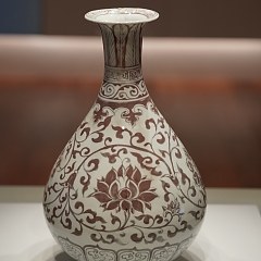 釉里红松竹梅图玉壶春瓶,江西景德镇御窑,明洪武(1368–1398年)
