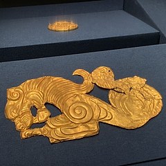 狮虎形金箔饰,战国,乌鲁木齐阿拉沟出土