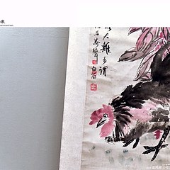 从左至右:《墨虾图》、《桂花白兔图》、《灯鼠图》