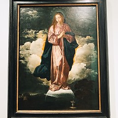 古典油画部分将展出一幅文艺复兴时期西班牙画家 Diego Velázquez 1619年作品《圣母无染原罪》(The Immaculate Conception)。这幅油画将圣母玛利亚描绘成没有原罪的圣洁形象,完全符合天主教的原始教义。