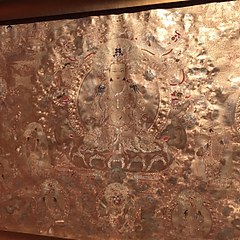 唐卡是藏语音译,最早出现于1300多年前的吐蕃王朝松赞干布时期,它是指用彩缎装裱后悬挂供奉的宗教卷轴画,被作为便携式解读教义的图录和供奉物,成为我国藏族文化独具特色的象征性绘画艺术,素有「藏民族百科全书」之称。2009年联合国教科文组织把包括唐卡、堆绣、彩塑及铜雕等在内的「热贡艺术」列入《人类非物质文化遗产代表作名录》。