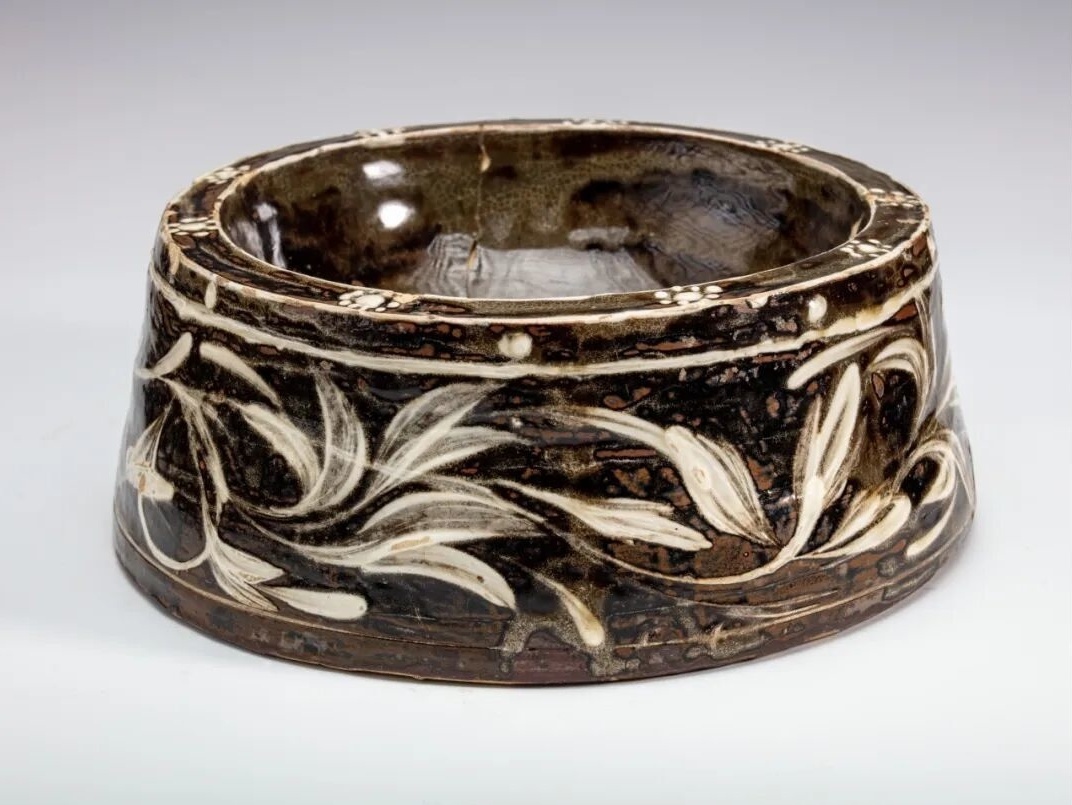 黑地白绘花瓷洗,金代,山西河津固镇瓷窑出土