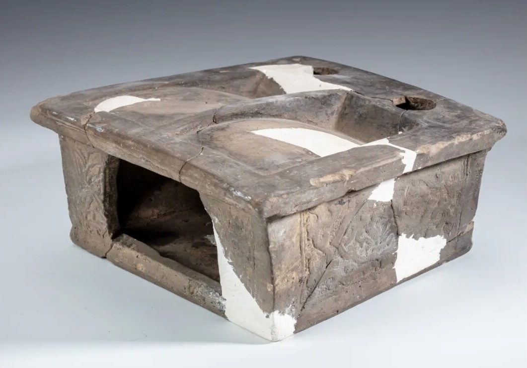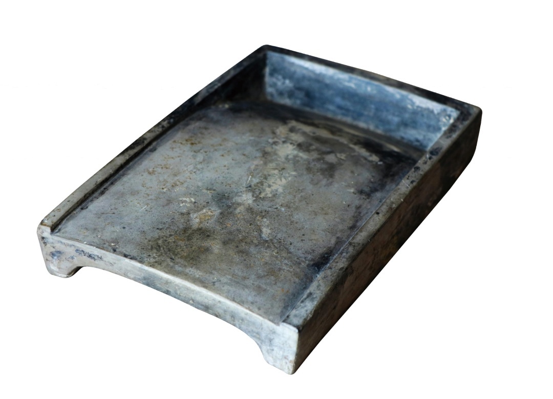 梯形灰陶暖砚,元代,山西新绛绛州大堂遗址出土