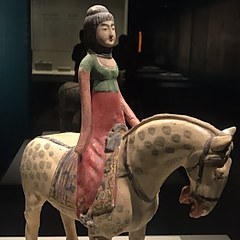 左:三彩骑马狩猎俑,咸阳市乾县永泰公主墓出土,陕西历史博物馆藏