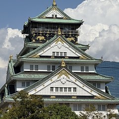 大阪城天守阁(Osaka Castle Museum)位于大阪城公园内,历史可追溯至16世纪日本战国时代。大阪城是日本「三名城」之一,在安土桃山时代是丰臣秀吉(Hideyoshi Toyotomi)的居城、丰臣政权的中心。「天守」(Tenshu)指日本城堡中最高且最主要的部分,是统治者权利的象征。