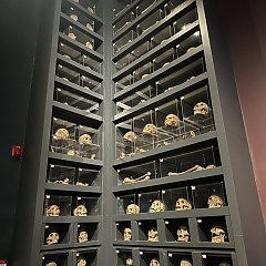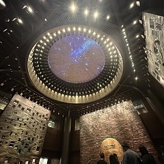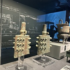 博物馆共有四层展厅,一层专门展出河南安阳殷墟遗址出土的2辆马车,这是我国目前发现最早的马车,距今已有3000多年。展厅地面特别设计一条「历史大道」,以时间轴的形式回顾中华文明起源发展的脉络和重大事件,侧面的「文物墙」则再现了田野考古发掘中的地层剖面。