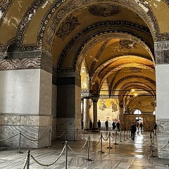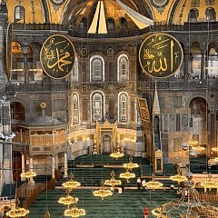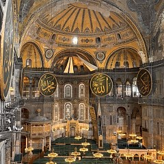 圣索菲亚大教堂(Hagia Sophia)建成于537年,外观呈拜占庭建筑风格,它曾先后被用作东正教、天主教和伊斯兰教的礼拜场所,主要展品为建筑本身及教堂内的镶嵌画与装饰艺术,包括「圣母子像」、「三圣像」等。