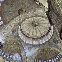 正中间为「米哈拉布」(Mihrab)所在的凹室。「米哈拉布」朝向伊斯兰教圣地麦加的方向,是清真寺内最重要的礼拜场所。穹顶上有教堂内现存最古老的镶嵌画「圣母子像」,它完成于公元867年,是拜占庭圣像破坏运动结束后的第一幅镶嵌画。