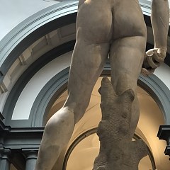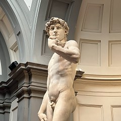 出于对文物保护的考虑,1873年「大卫像」从佛罗伦萨领主广场(Piazza della Signoria)移至学院美术馆,以避免被风雨侵蚀。