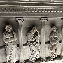 「亚历山大石棺」制作于公元前4世纪晚期,外部雕刻了亚历山大大帝率领马其顿军东征的「伊苏斯战役」,雕刻技艺精良,展现了古代墓葬艺术。
