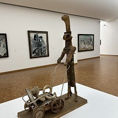 路德维希博物馆拥有近900幅毕加索作品,涵盖绘画、版画、陶瓷和雕塑等类型,重要作品包括油画《双手交叠的丑角》《手持朝鲜蓟的女子》;雕塑「推着婴儿车的女子」「Dora Maar」等。该馆亦是唯一收藏毕加索三个主要版画系列的公共机构,分别为「Suite Vollard」「Suite 345 」「Suite 156」。