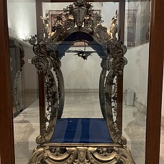 澳门博物馆(Macao Museum)建于澳门历史遗迹「大炮台」之上,1998年向公众开放,专注展示澳门历史与多元文化。馆内藏品超过3000件,以澳门历史、民生、艺术和考古文物为主,大部分由澳门市民捐赠,包括绘画、陶瓷器、宗教文物、历史文献等。右图为清乾隆时期的墨彩描金「耶稣复活」纹折腰盘。