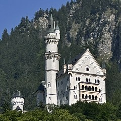 巴伐利亚国王 Ludwig II 1868年下令修建新天鹅城堡,作为自己的隐居住所。当选址附近的道路修建完成后,城堡于1869年9月5日正式举行奠基仪式。