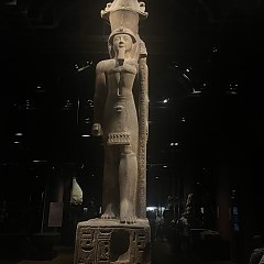 1层分为「法老雕像」和「努比亚展厅」,前者展出古埃及历任法老雕像,包括十八王朝法老阿蒙霍特普一世雕像、十九王朝法老拉美西斯二世雕像、塞提二世法老雕像等。