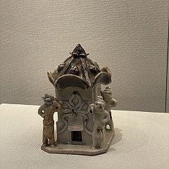 「汉家陵阙」展厅展出汉代中山王族墓出土器物,主要为刘胜、刘修、刘焉、刘畅4位中山王的墓葬随葬品,包括陶楼、生活用器、青铜器等。另外展出部分汉代画像砖,从装饰图像呈现汉代人们的生活、劳作和战争。