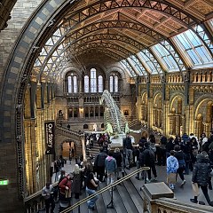 伦敦自然历史博物馆(Natural History Museum)1881年向公众开放,是英国规模最大的自然历史博物馆,收藏超过8000万件动植物标本、矿物及化石。重要藏品包括长达25米的蓝鲸骨骼标本、第一批人类发现的禽龙牙齿化石等。