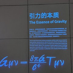 「宇宙」展区位于2楼,分为「时空」、「引力」、「光」、「元素」、「生命」5部分,从不同视角展现宇宙的运行规律。展区中的「假如剧场」由多层异型幕组建,生动演绎宇宙起源的故事;参观者还可以在「奇异时空」展项中与26岁的爱因斯坦合影。