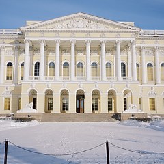 俄罗斯国家博物馆的主馆位于米哈伊洛夫斯基宫(Mikhailovsky Palace),这座宏伟的宫殿由意大利建筑师 Carlo Rossi 设计,历时六年建成,整个工程耗资超过780万卢布。1825年,亚历山大一世将宫殿赠送给自己的弟弟米哈伊尔·巴甫洛维奇大公。