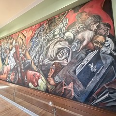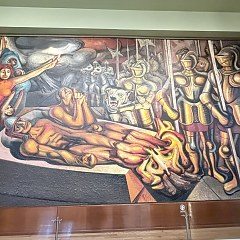 三层的西侧为 Diego Rivera 的《十字路口的人》;北侧为 David Alfaro Siqueiros 的《新民主》三部曲和 Diego Rivera 的《墨西哥生活的狂欢》四部曲;东侧为 José Clemente Orozco 的《宣泄》。