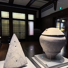 东楼2层设有基本陈列「古代上海」,从6000年前的马家浜文化起,按时间顺序回顾上海从新石器时代至晚清时期的历史。展览以史前文明、古代发展、城镇兴起为线索,分两部分展现古代上海地区人类活动、市镇繁荣、文化兴盛和文明成就。