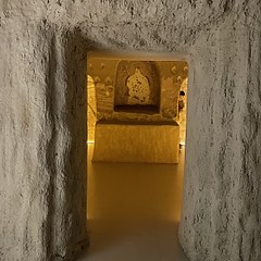 「数字技术还原石窟」展区以高仿实体的形式重建了新疆克孜尔石窟及库木图拉石窟,参观者可以直接看到石窟的整体结构和壁画色彩。