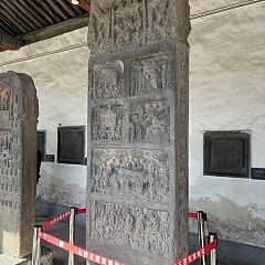「汉画像石和宋金墓葬砖雕展」 陈列在「灵宝洞」展厅及2层展厅,共展出53件文物,以山西出土的东汉左表墓室画像石为主。这些画像石题材广泛,包括历史故事、古代神话,以及表现墓主身份地位和日常生活的内容等。