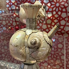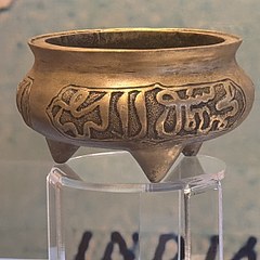 印度、中国和马来展厅则分别展示了从这些国家收集的伊斯兰主题藏品,例如印度镶钻珐琅金项链、以阿拉伯语作为纹饰的毛笔缸、19世纪金顶银身槟榔盒、一把印度尼西亚「克里斯」匕首等。