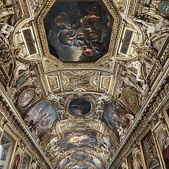 意大利绘画展厅「大画廊」展出曼特尼亚、拉斐尔、达·芬奇、阿尔钦博托、卡拉瓦乔等人的作品。法国绘画展厅「红厅」展出《拿破仑一世加冕大典》《自由引导人民》及其他画作。美第奇画廊展出亨利四世之妻委托鲁本斯创作的全套《玛丽·德·美第奇生平》组画。