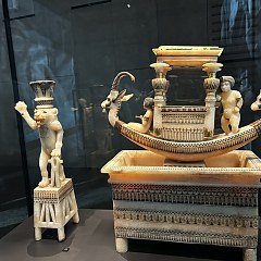 -展厅4-6:中王国时期和第二中间时期的文物。重要展品包括梅塞赫蒂(Mesehti)木棺、乌赫霍特普(Ukhhotep)葬礼船模型,以及一组1936年出土于中王国时期神庙遗址的「托德宝藏」(Tod Treasure)。