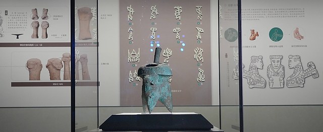 常设展核心展品包括一枚中国东部地区首次发现的甲骨卜辞,共刻有34个象形文字,记录了地方贵族通过占卜祈求消除灾祸的场景,不仅填补了非王卜辞体系的空白,还证明商代东方贵族已掌握文字书写技能。