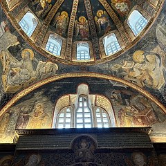 科拉教堂(Chora Church)始建于公元5世纪,外观为拜占庭建筑风格。教堂以东正教镶嵌画和壁画艺术闻名,主要内容为圣母玛利亚、耶稣基督及其他圣经人物的生平故事,重要作品包括「圣母之死」「耶稣复活」等。